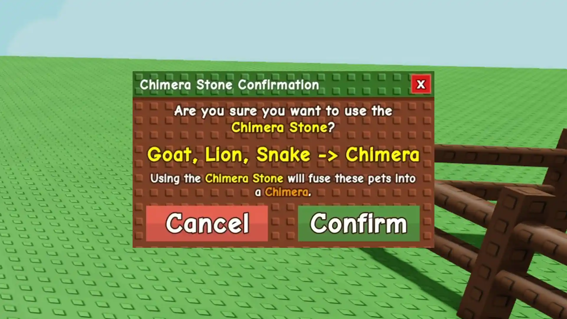The Chimera Stone is a Divine-tier gear item that can be used to fuse three different pets, an Emerald Snake, a Lion, and a Goat, into a Chimera. Visually, it looks like any other pet shard but this one can be used to create a whole new pet.